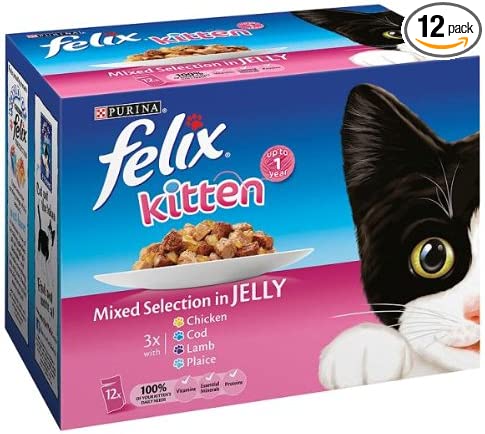 FELIX KITTEN MIXED SELECTION IN JELLY POUCHES – 12 X 100GM